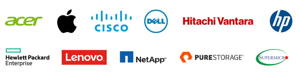 Choose from 11 supplier partners and 10 OEMs across a variety of products and services, including Acer, Apple, Cisco, Dell, Hitachi Vantara, HP/HPE, Lenovo, NetApp, Pure Storage, and Super Micro.